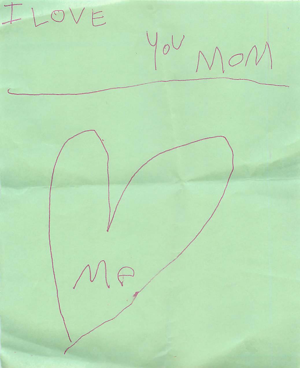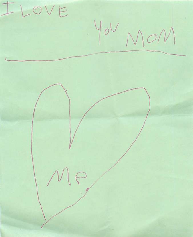 “Aw,” I said. “‘I love you, Mom, love, me.’ That’s nice!”