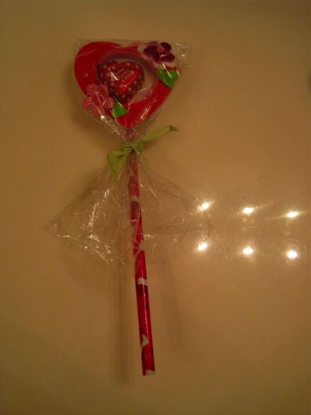 The kids had their Valentine’s Day parties on Thursday at school. My very talented sister put together beautiful Valentine treats for them to hand out to their friends. For the last couple of years she’s made very lovely, time-consuming, and probably expensive treats for the kids at no cost or effort to me, which has been pretty terrific. For me. And the kids. And she must enjoy doing it, right?