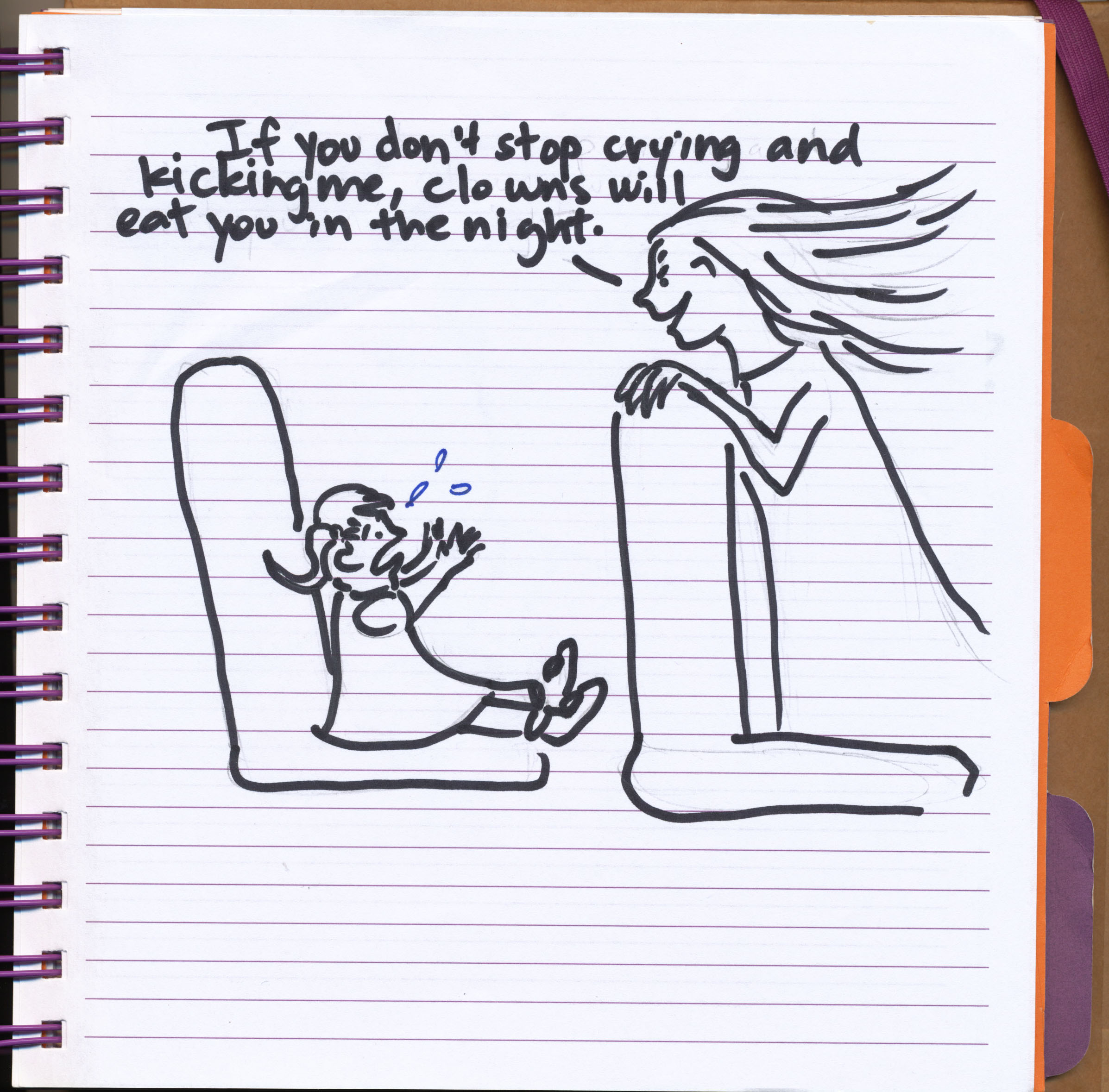 I don’t act on it because it would be cruel to scar this kid for life just for annoying me for three hours straight.