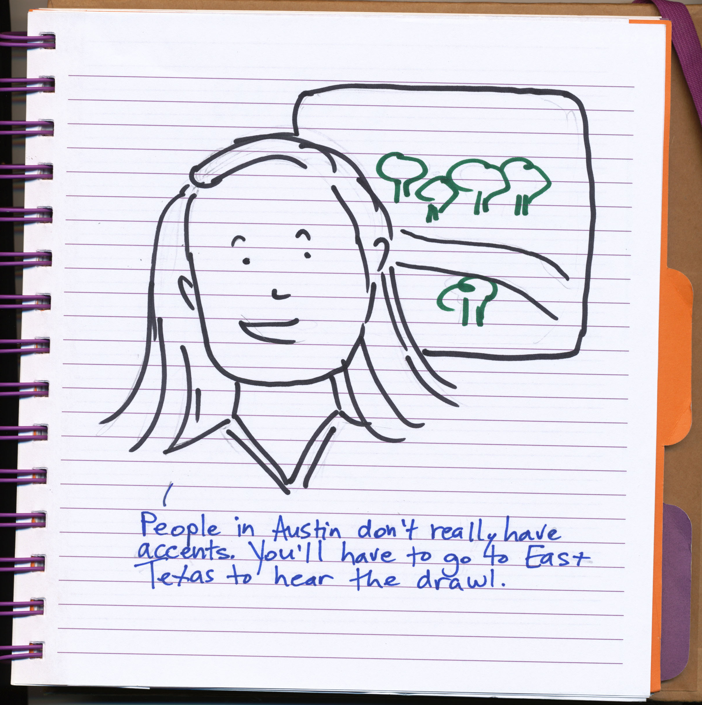 Also, your cousin is wrong. You don’t have an accent. I say that a former Nebraskan and Californian who definitely knows a Texas accent when she hears one. :)