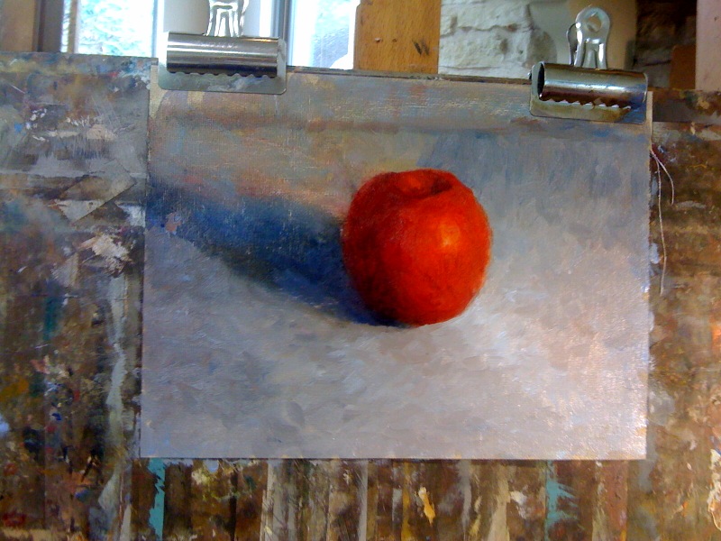 Now that I’m working in color, my first project is to paint an apple. This is harder than it sounds.