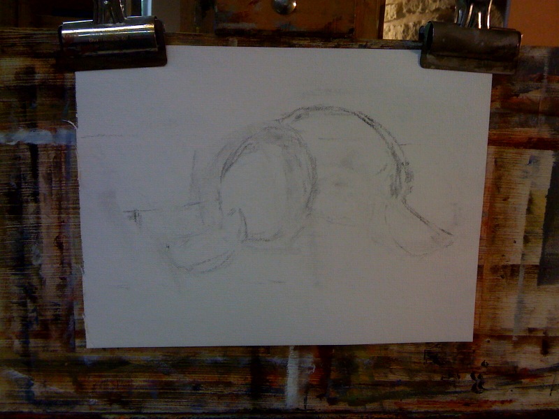 Today I started working on recreating the lemon painting (see post below) with a real still-life.